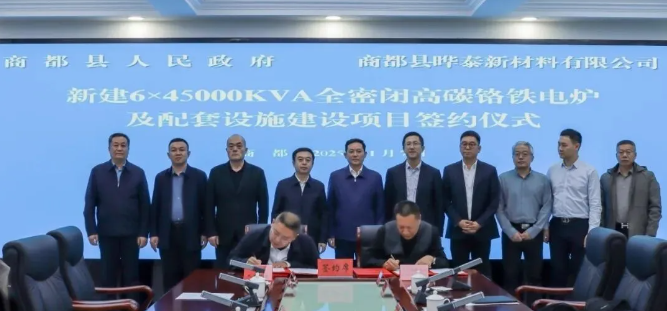1月7日,商都縣人民政府成功簽約2個(gè)超10億元的重點(diǎn)項(xiàng)目,其中包括新建6×45000KVA全密閉高碳鉻鐵電爐及配套設(shè)施建設(shè)項(xiàng)目。