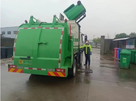 10月8日上午,寧波市首輛5噸+新能源廚余垃圾清運(yùn)車緩緩開進(jìn)甬江街道河?xùn)|村,進(jìn)行清運(yùn)工作。