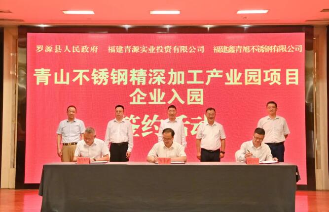 6月20日,青山不銹鋼精深加工產(chǎn)業(yè)園項(xiàng)目及企業(yè)入園集中簽約,開啟羅源不銹鋼產(chǎn)業(yè)發(fā)展嶄新篇章。信拓實(shí)業(yè)集團(tuán)有限公司董事長(zhǎng)張積敏、浙江青山鋼網(wǎng)電子商務(wù)有限公司董事長(zhǎng)朱文達(dá)、福建青源實(shí)業(yè)投資有限公司董事長(zhǎng)孫朝暉及11位簽約項(xiàng)目企業(yè)方代表;縣領(lǐng)導(dǎo)張新懌、蘭可明、陳登興、黃垂衛(wèi)、張昆鵬、黃國(guó)安,福州臺(tái)商投資區(qū)領(lǐng)導(dǎo)吳志群等出席簽約儀式。